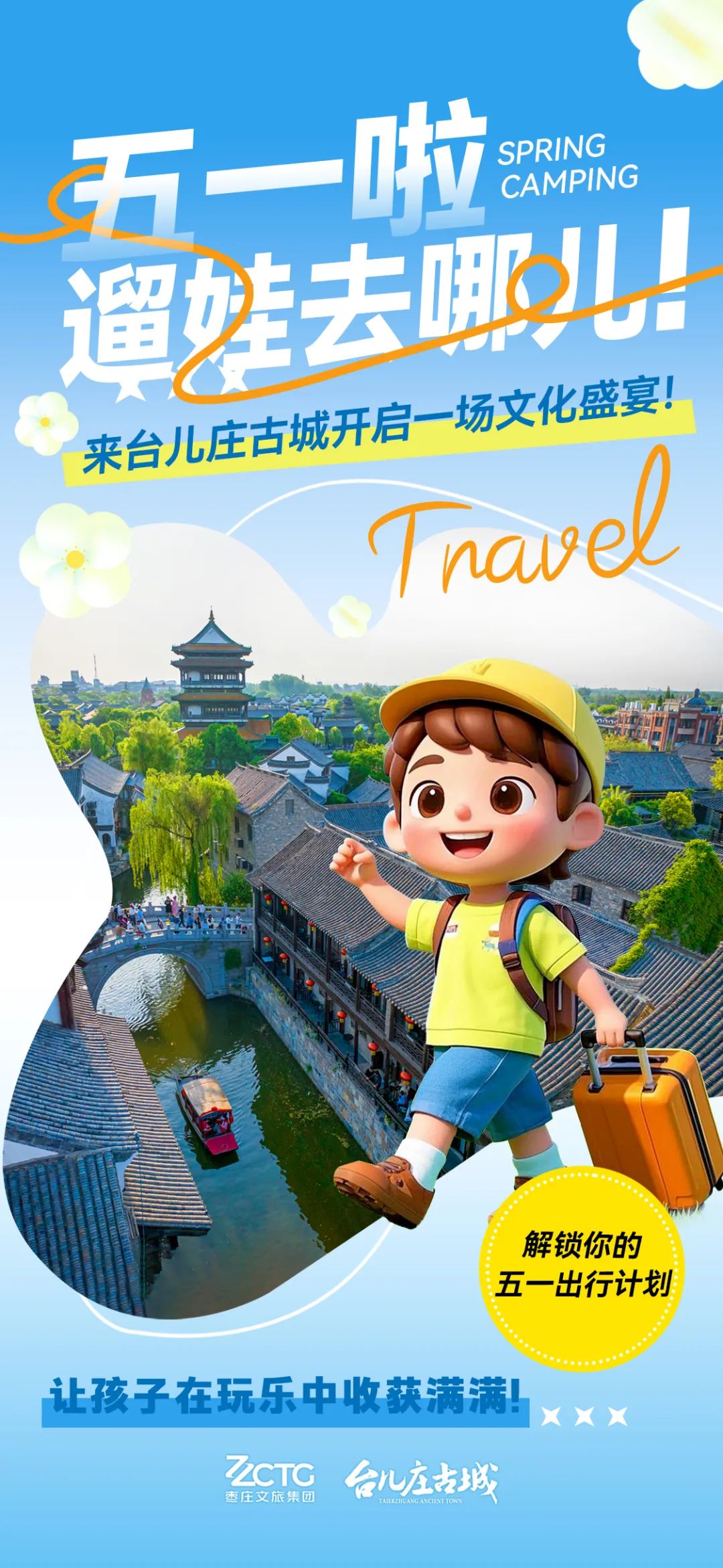 五一假期,带着孩子来台儿庄古城,在摇橹船中感受运河文化,在非遗体验中晓悟传统魔力,在大战文化中谨记历史,在古风穿越中相见古韵,在夜游光影秀中感受虚幻。敬佩这将是一次让孩子毕生难忘的文化之旅!快来开启属于你们的精彩旅程吧!