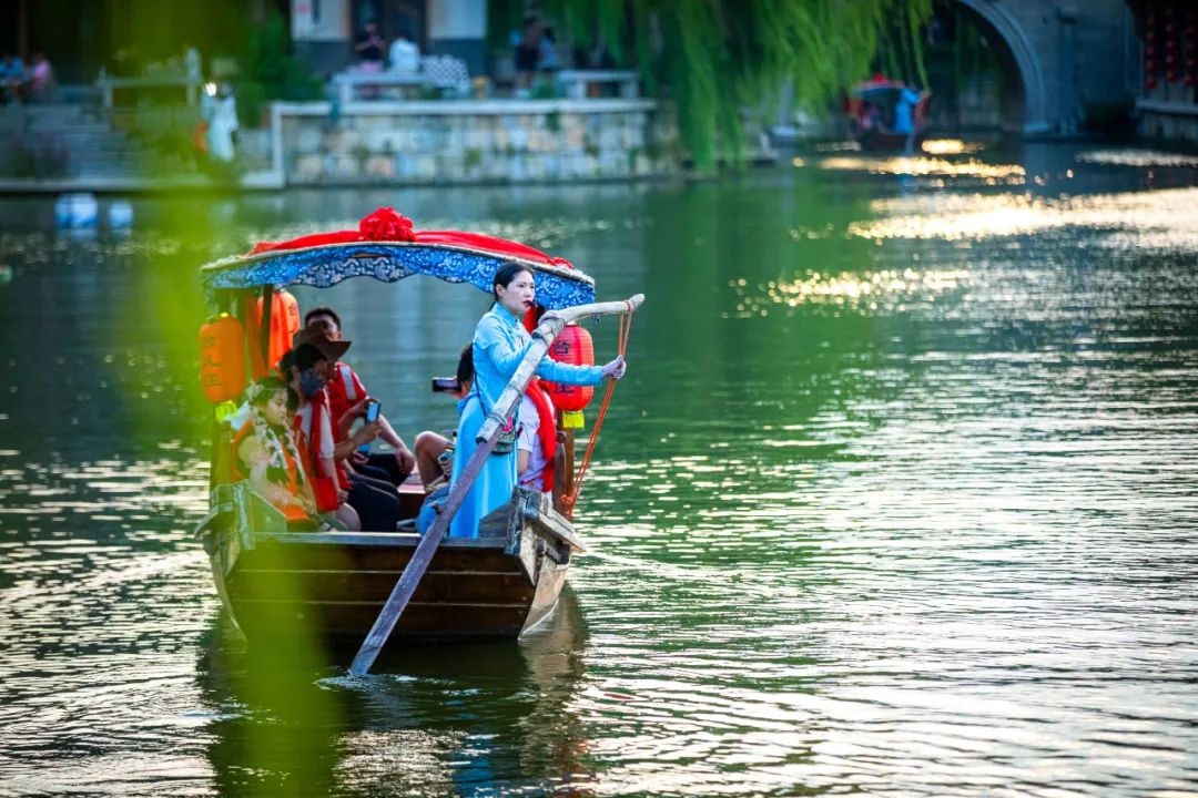 踏上摇橹船,缓缓驶入台儿庄古城的运河。划子在碧波上摇曳,两岸古色古香的成就如画卷般张开。船妹子手中的橹,有节拍地划动,发出“嘎嘎吱吱”的声响,仿佛在诉说着运河千年的故事。