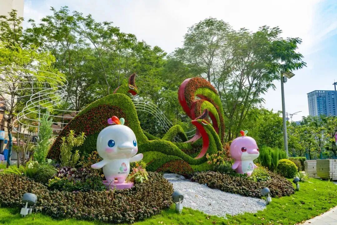 祥瑞物“乐滋滋”和“乐融融”伫立其间