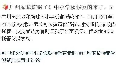 “广州黄埔区和海珠区小学试点‘春秋假’”