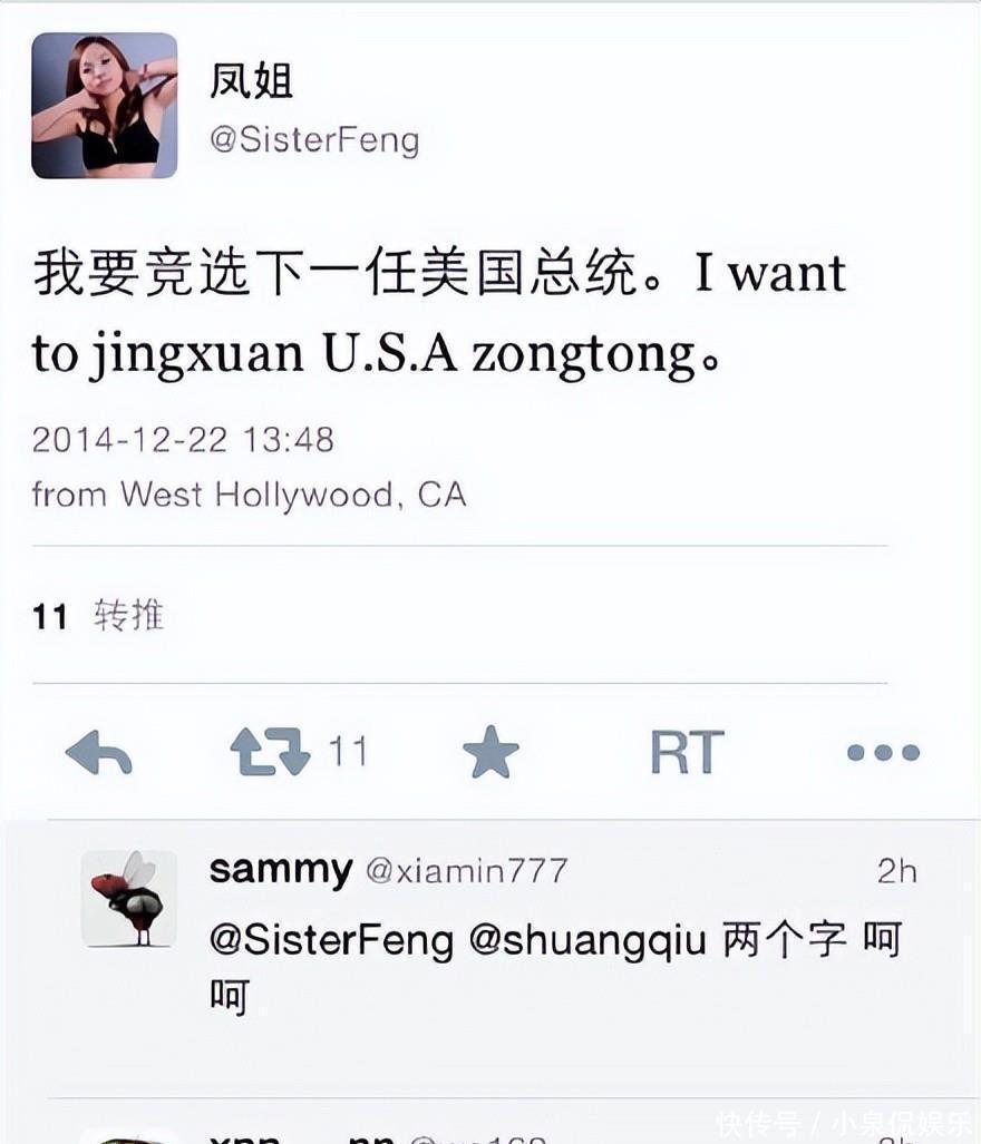 就连凤姐在外洋也敢说要去竞选好意思国总统,可惜没东说念主再把她当真了。