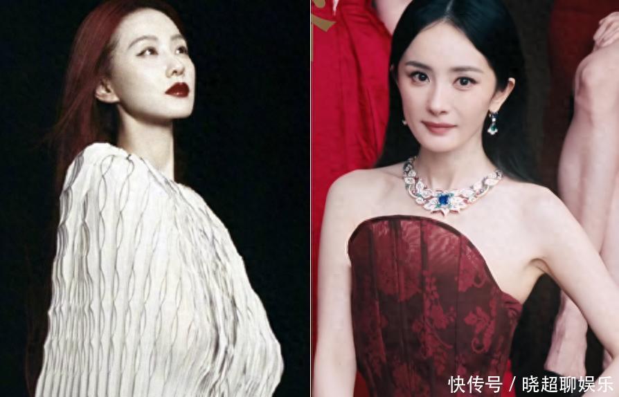 刘诗诗长短色彩凉爽腾贵,杨幂的红色封面明艳红火,齐各有风仪。
