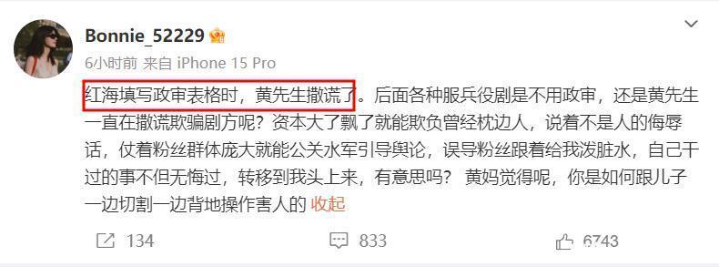 王雨馨控诉黄景瑜在拍《红海步履》时政审作秀,并质疑黄景瑜后续拍了许多军旅题材的影视作品,一直作假骗取剧方。