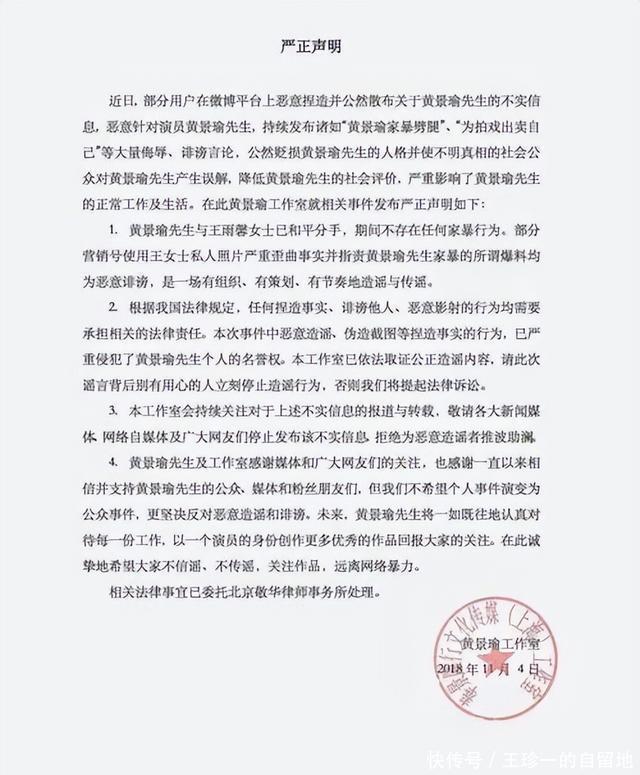 彼时,该爆料激发全网热心,而黄景瑜发声明辟谣家暴和出轨。