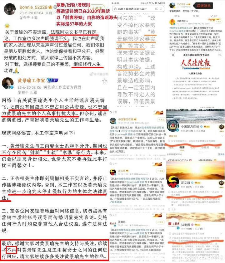直到2023年6月,黄景瑜发布了一份声明,声明中再次否定了家暴、出轨的指控,并提到和王雨馨是和平分开,两东说念主异日会以一又友的身份相处。