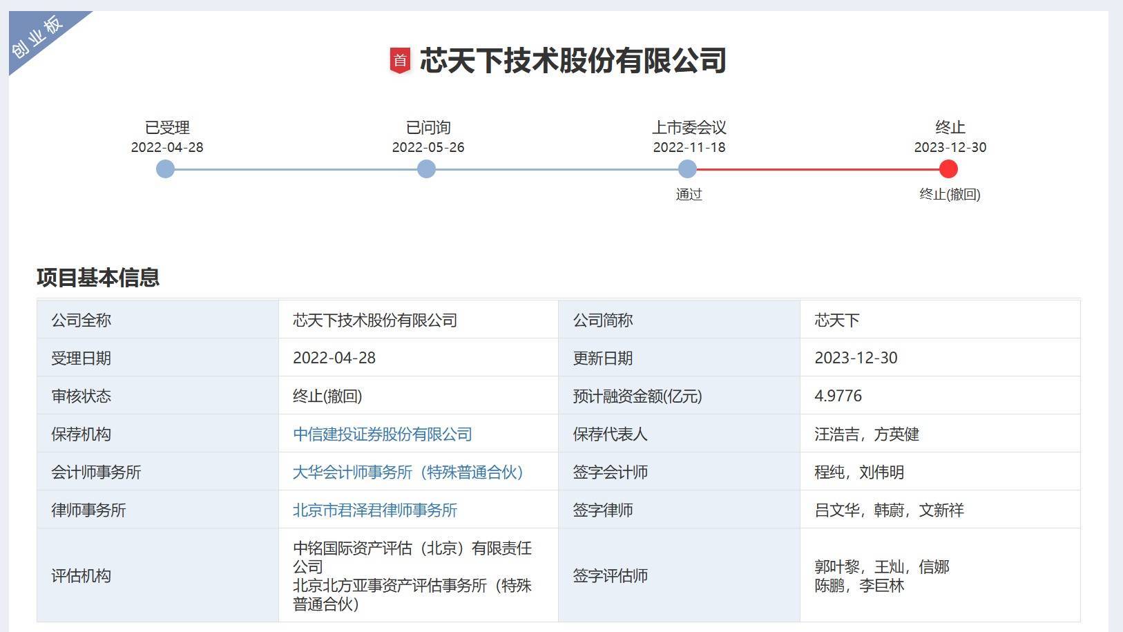 濒临行业下行周期及A股上市严格的审核轨制,芯全国觉得A股上市苦求的审批关节预期需时较长且存在不祥情味,可能对本集团的业务营运形成不利影响,于是在2023年12月30日主动珍重A股上市苦求。