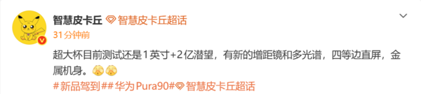 在外不雅操办上,华为Pura90系列或将迎来变化。多方音书指出,该系列全系有望回顾四等边直屏操办,提供1.5K分袂率,其中圭臬版屏幕尺寸约为6.58英寸,Pro版与Ultra版则升级至6.87英寸大屏。