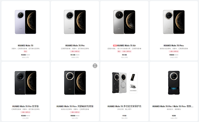 据悉,Mate 70系列共有五款机型,包括:Mate 70、Mate 70 Pro、Mate 70 Pro优享版、Mate 70 Pro+、Mate 70 Air。